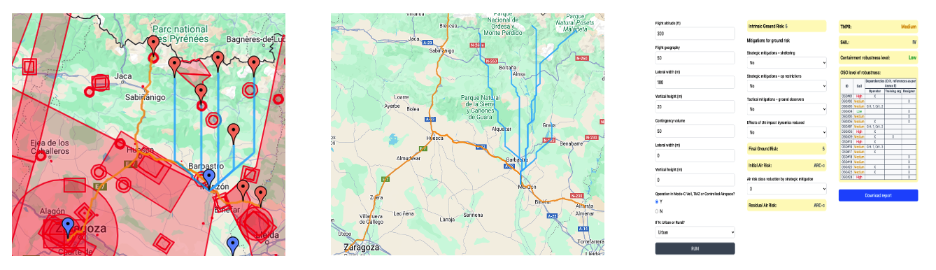 • Automated Documentation: Generates downloadable SORA reports and ConOps summaries, accelerating repeatable approvals and operational readiness.